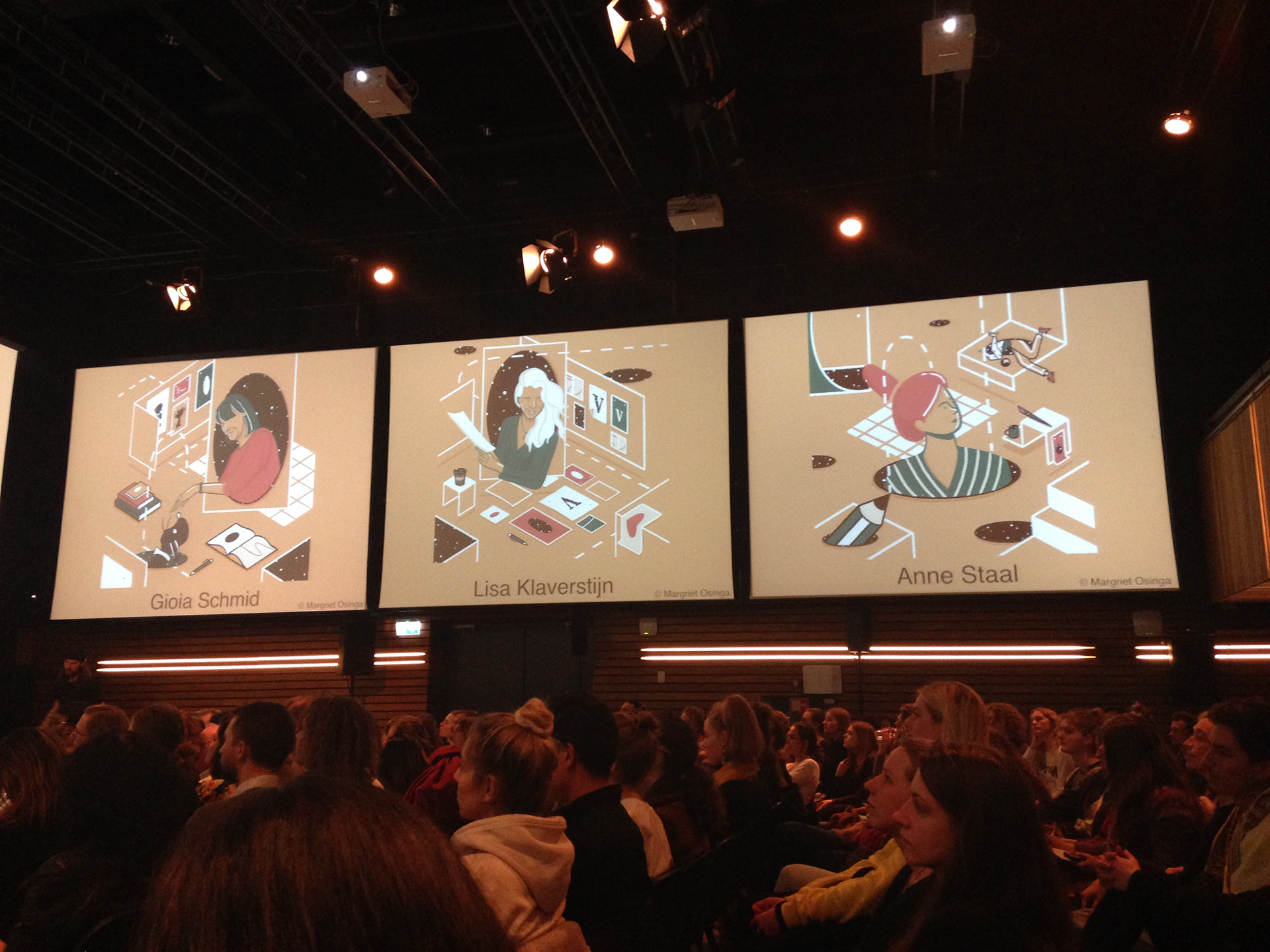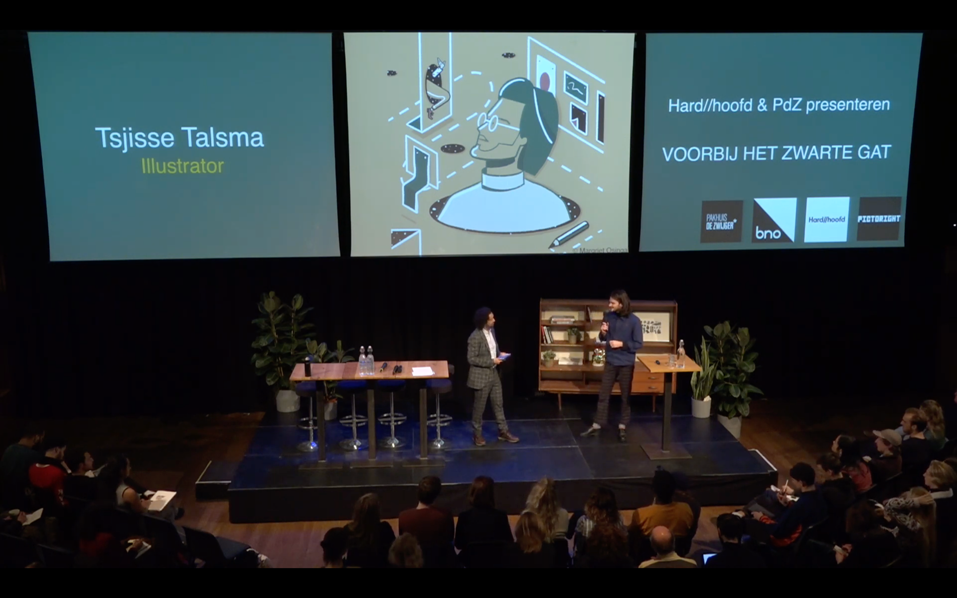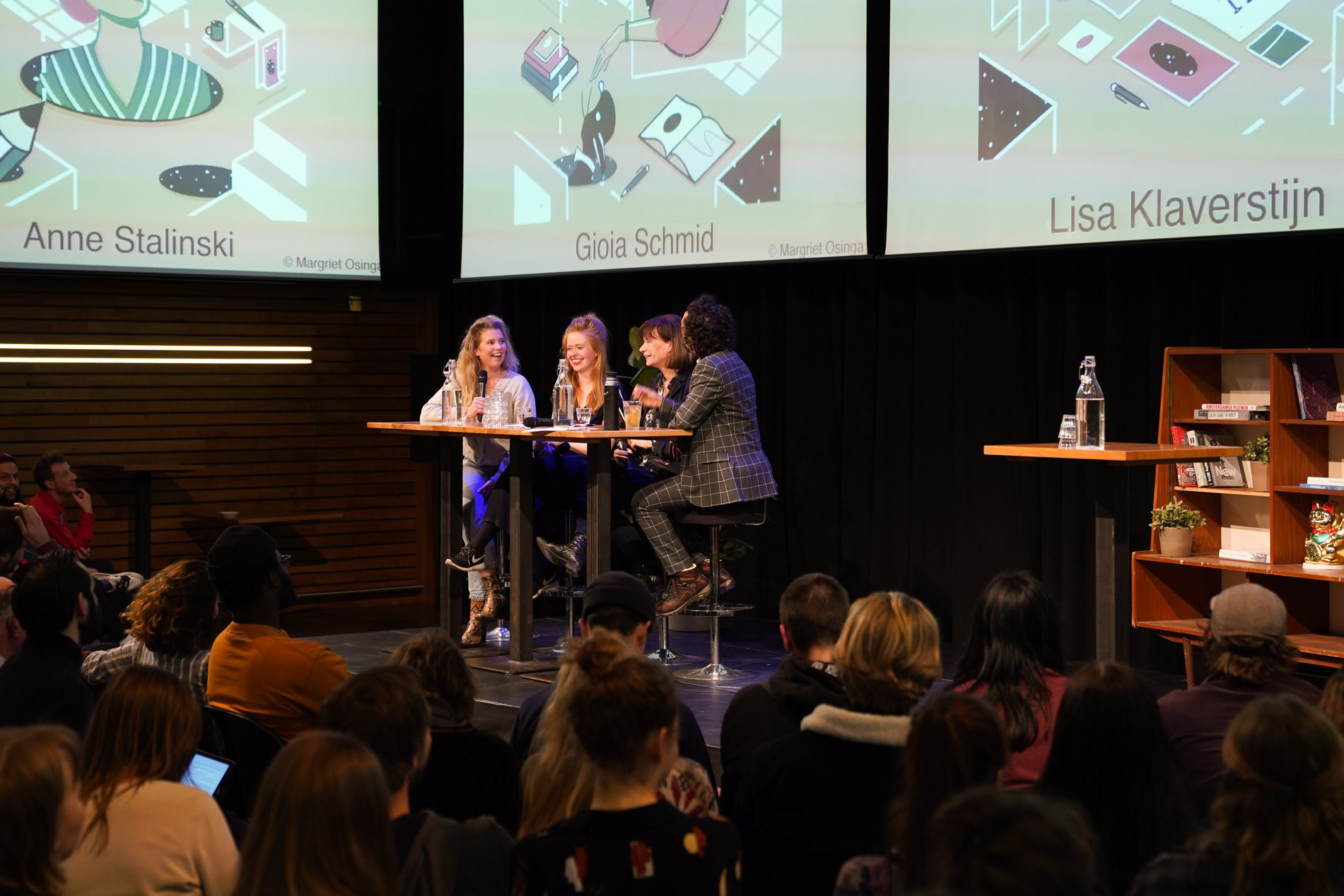 Portretten van sprekers op de Hard//hoofd Illustration Masterclass 'Voorbij het zwarte gat' @ Pakhuis de Zwijger. Lisa Klaverstijn: beeldredacteur Volkskrant, Gioia Smid: Fiep Westendorp Foundation, , Anne Staal: Illustrator, Tsjisse Talsma: Illustrator, Hedy Tjin: Illustrator. --- Portraits of speakers at the Hard//hoofd Illustration Masterclass 'Beyond the black hole' @ Pakhuis de Zwijger.