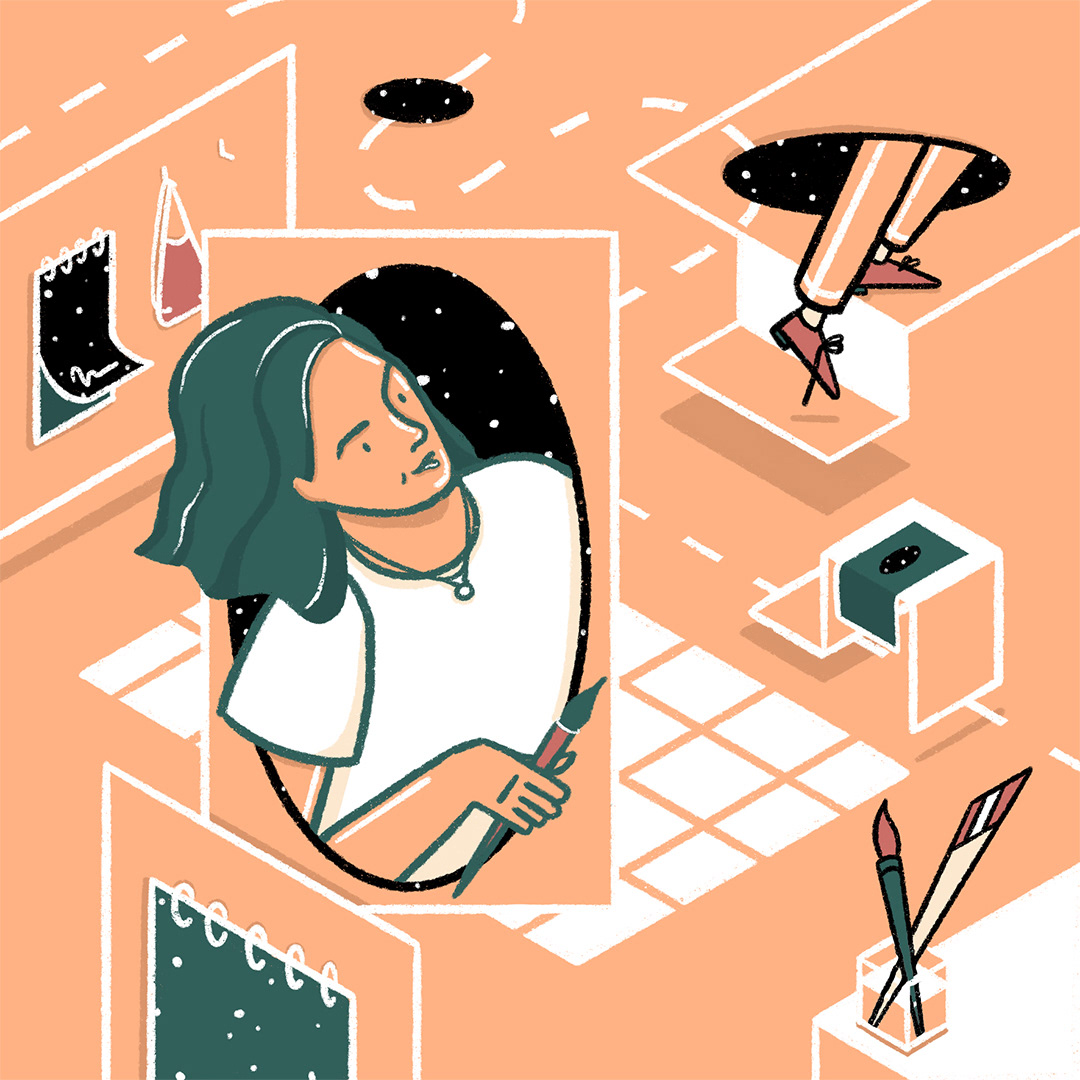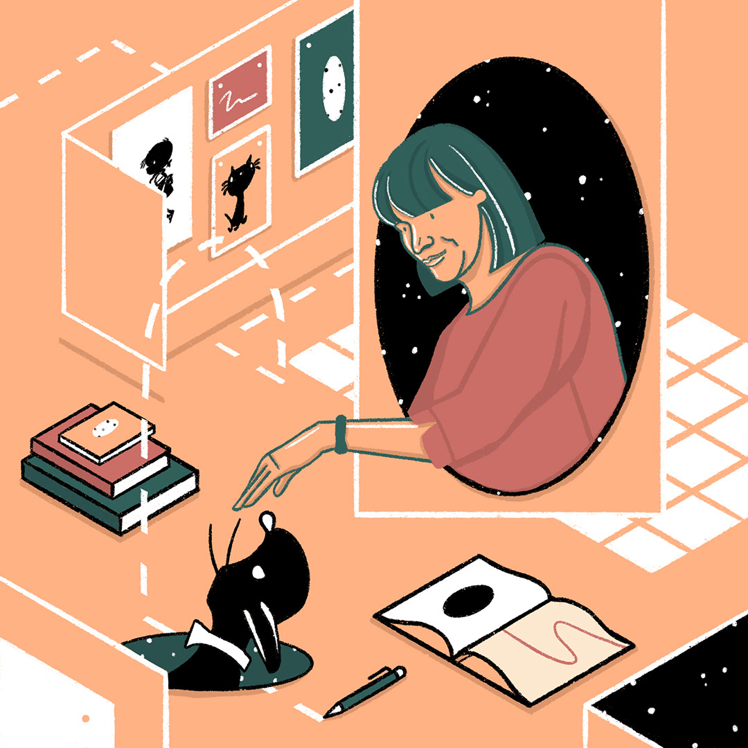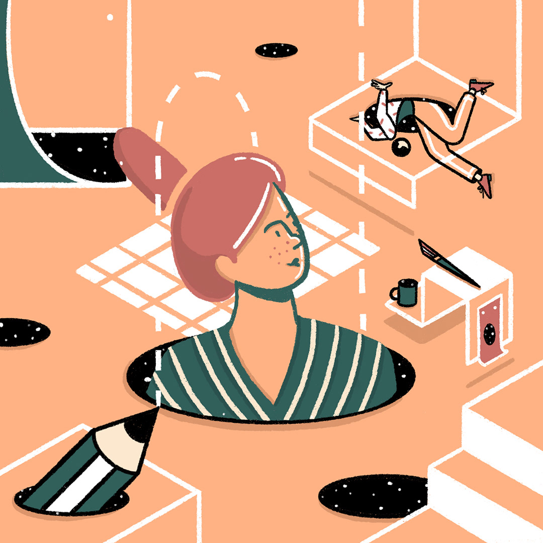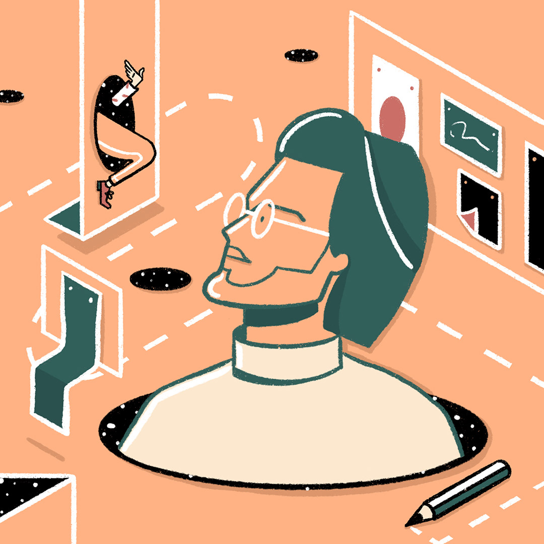 Portretten van sprekers op de Hard//hoofd Illustration Masterclass 'Voorbij het zwarte gat' @ Pakhuis de Zwijger. Lisa Klaverstijn: beeldredacteur Volkskrant, Gioia Smid: Fiep Westendorp Foundation, , Anne Staal: Illustrator, Tsjisse Talsma: Illustrator, Hedy Tjin: Illustrator. --- Portraits of speakers at the Hard//hoofd Illustration Masterclass 'Beyond the black hole' @ Pakhuis de Zwijger.